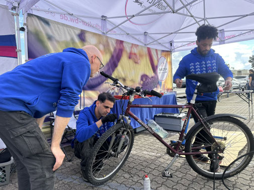 Auf dem Gelände von Auto Oswald haben drei sympathische RadChecker der Firma Radolino im Auftrag der Initiative RadKULTUR 6 Stunden lang ca. 80 Fahrräder auf Sicherheitsmängel überprüft und dabei unter anderem Bremsen eingestellt und gereinigt, Ketten geölt, Lichtanlagen überprüft und repariert, Reifen aufgepumpt und vieles mehr geleistet.